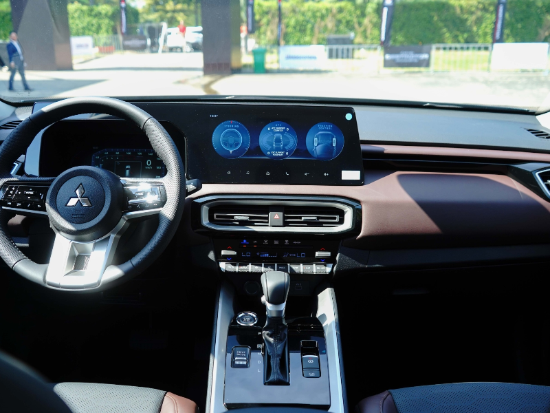 Mitsubishi Destinator Premium được trang bị màn hình giải trí liền khối phẳng 12,3 inch, hiển thị đa thông tin và tích hợp các kết nối hiện đại như điện thoại thông minh, Apple CarPlay và Android Auto.